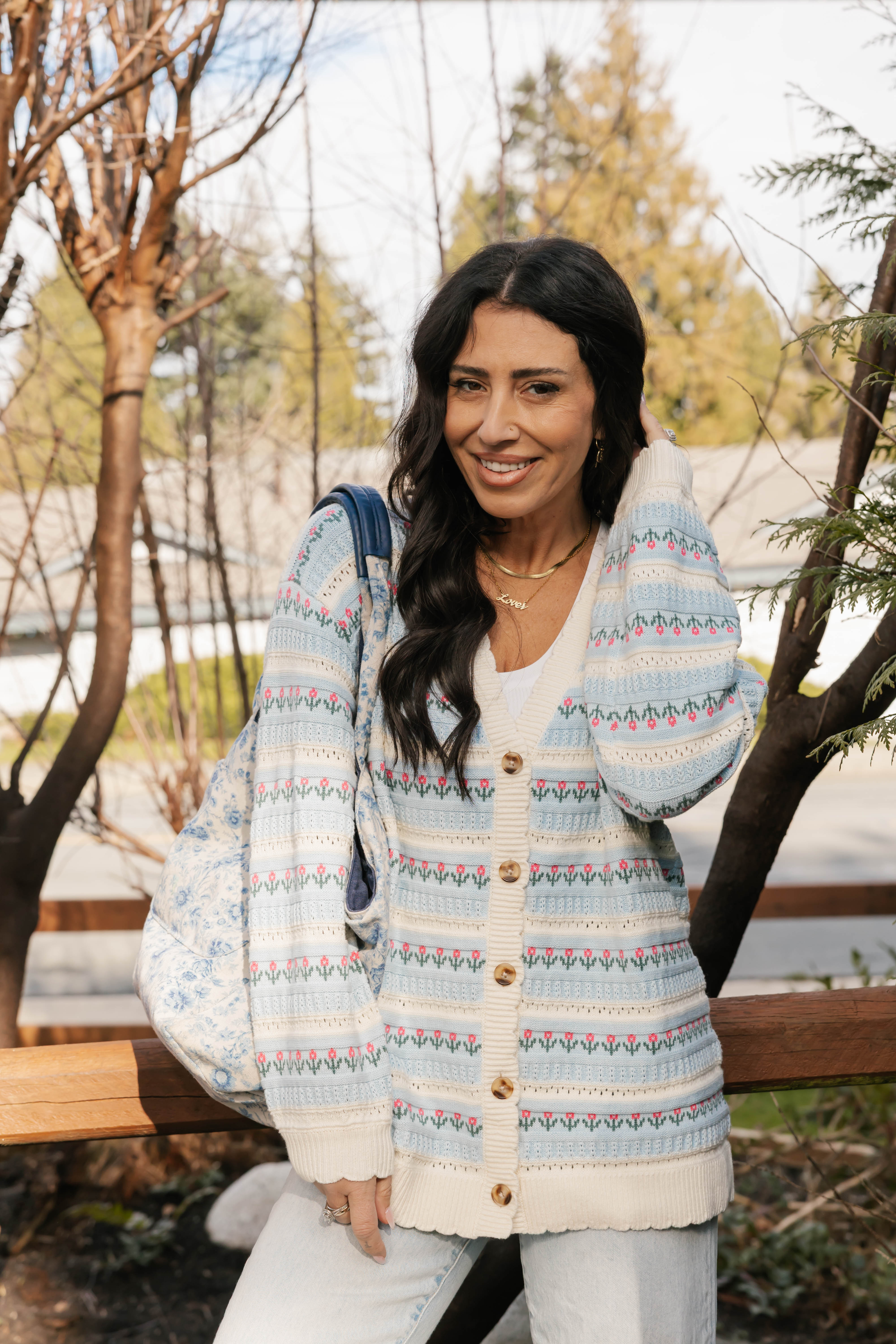 - Tulip Cardigan in Blue Cream Tulip Cardigan in Blue Cream