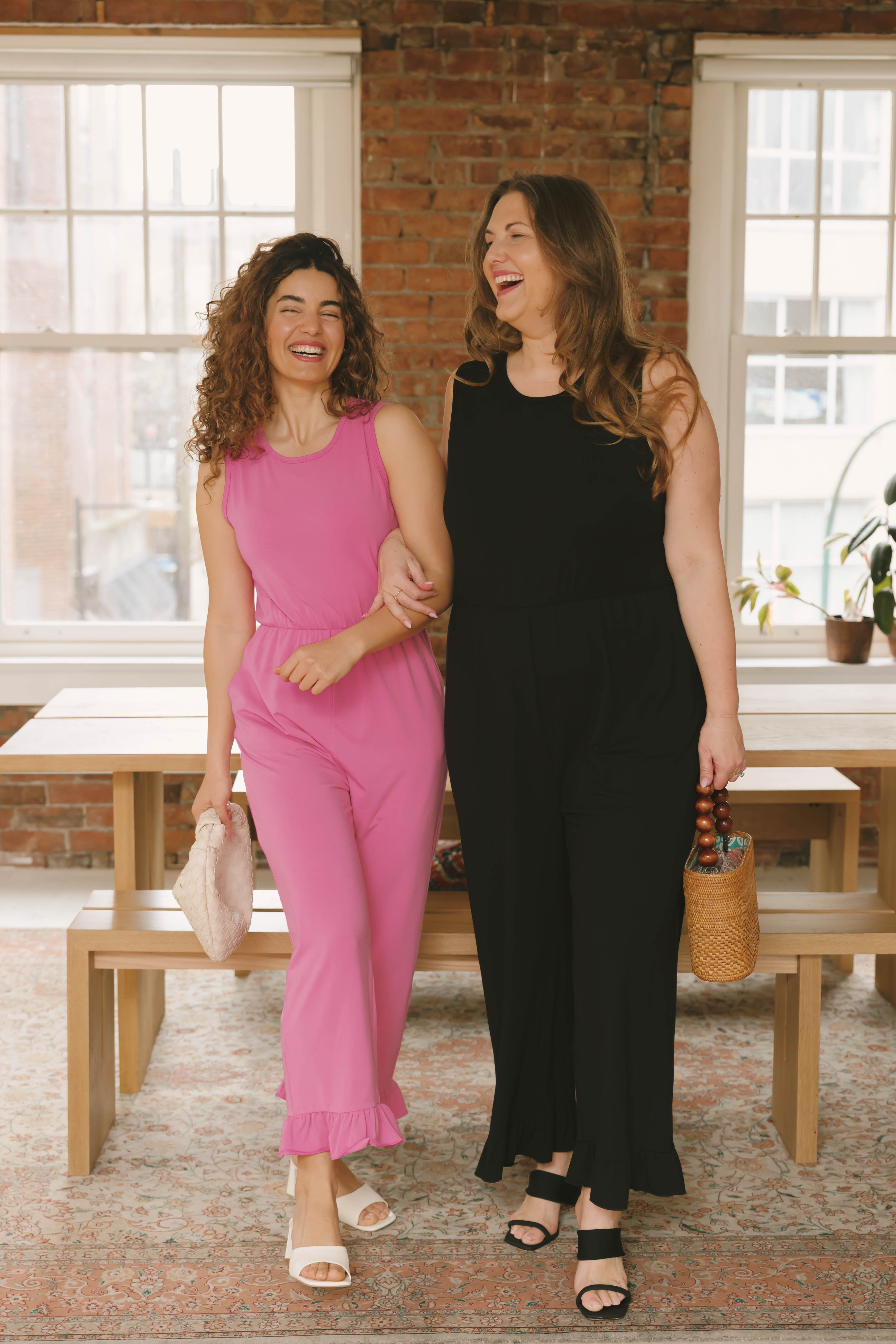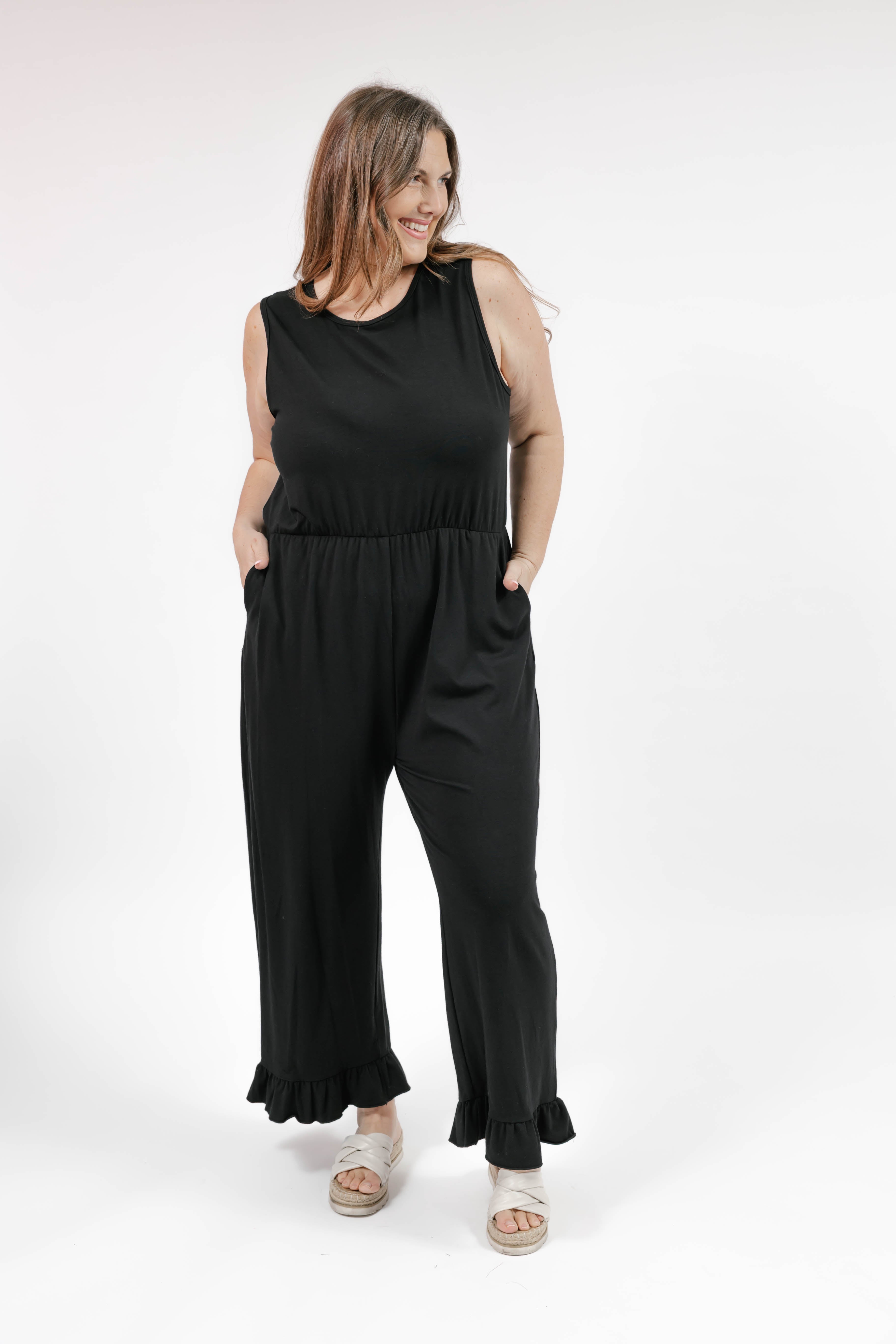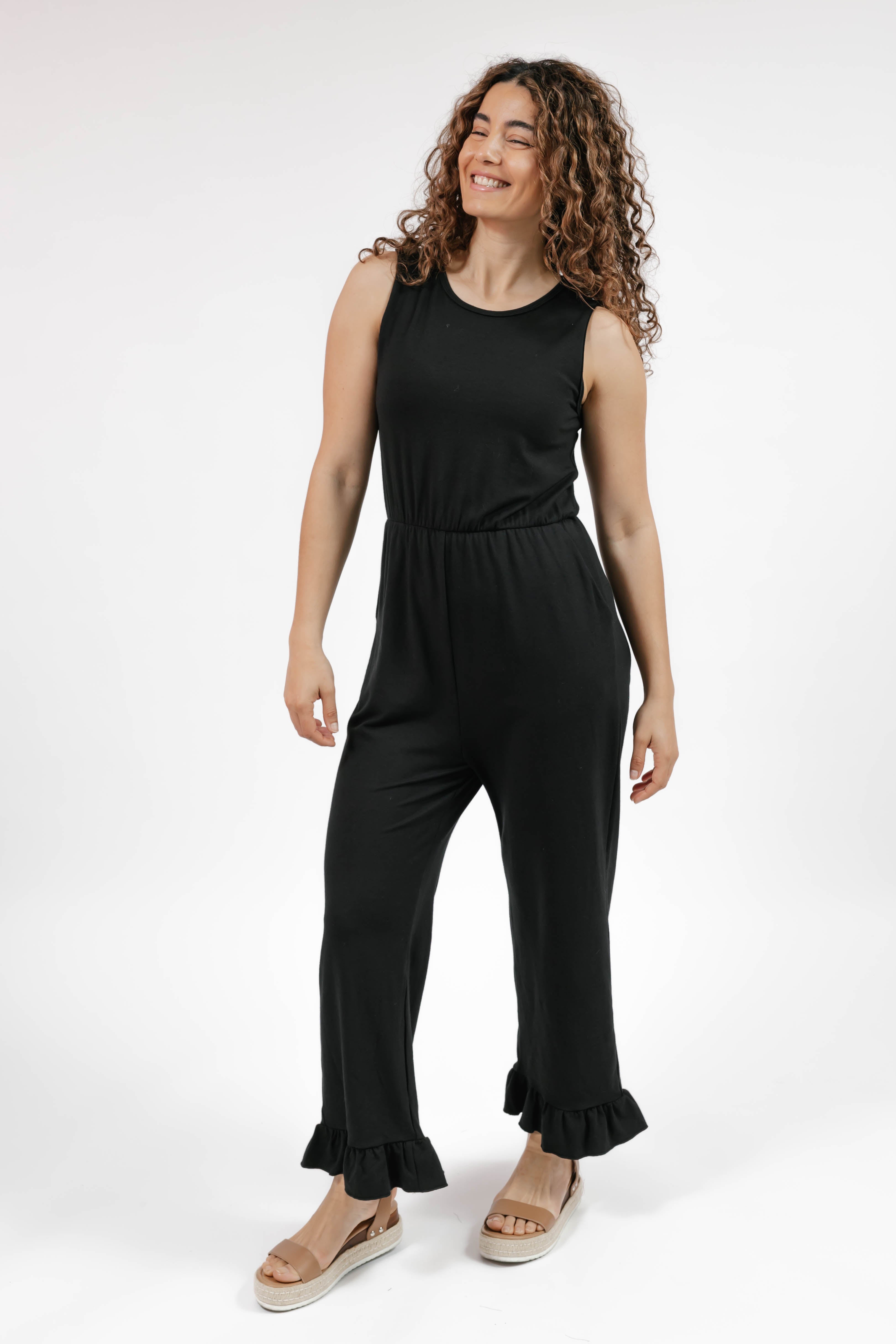 Fun and feminine! Made in our signature jersey, the Madison Frill Leg Romper features a tank-like top and straight leg with a darling ruffle hem. Pair this style with your favourite spring sandal for an instantly elevated, yet comfortable outfit!