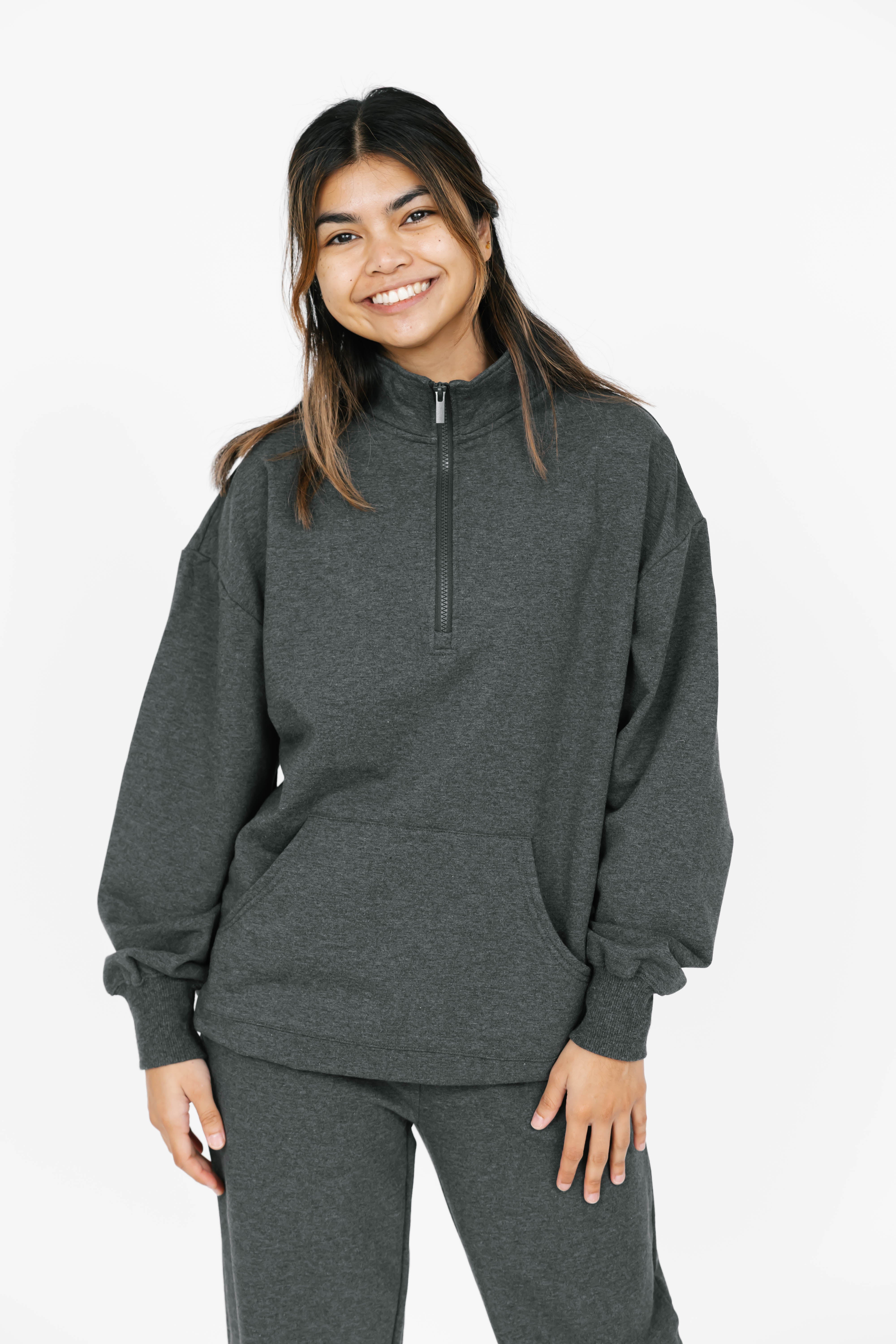 - Sara Sweatfleece 1/4 Zip Top in Heather Charcoal Sara Sweatfleece 1/4 Zip Top in Heather Charcoal